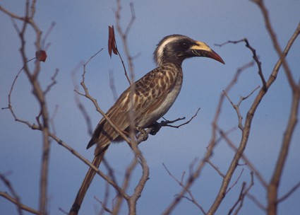 Le plus courant est le calao à bec jaune, surnommé 'banane volante" en raison de son gros bec jaune. On le trouve partout et en gand nombre, dans la region du Kruger.